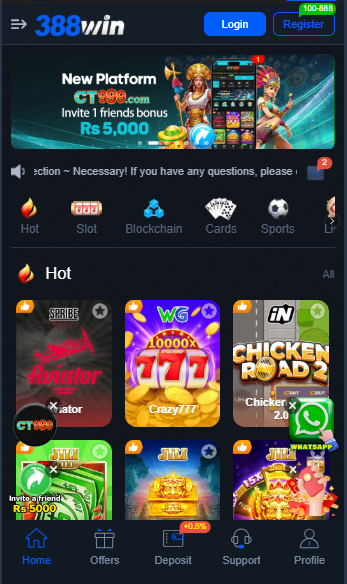388WIN is an online real money gaming platform that provides different types of casino-style games through its mobile application. It mainly targets users in countries like Pakistan where mobile gaming is increasing rapidly.